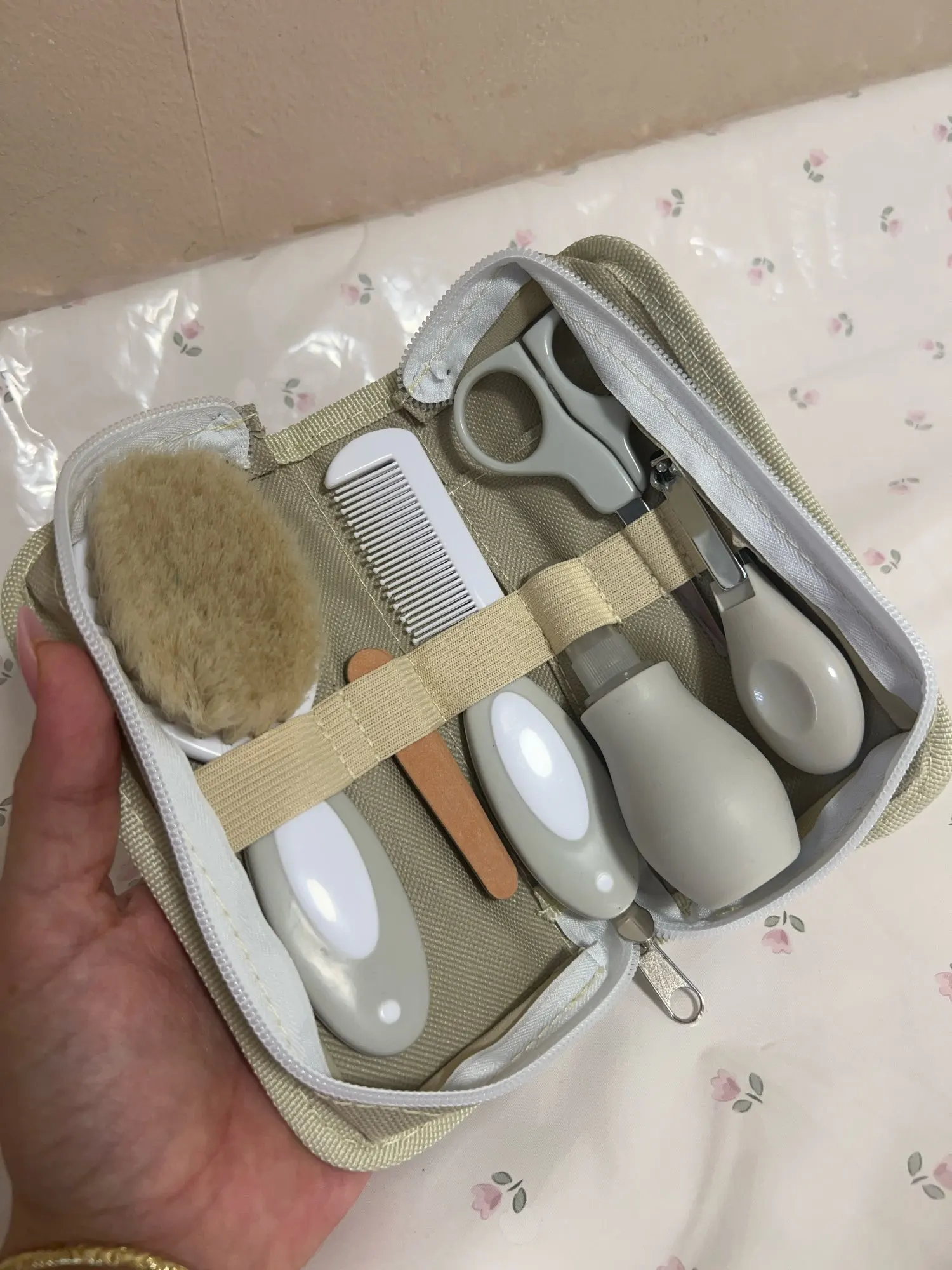 - Complete Care Set: Includes nail clipper, scissors, nail file, brush, comb, and nasal inhaler.
