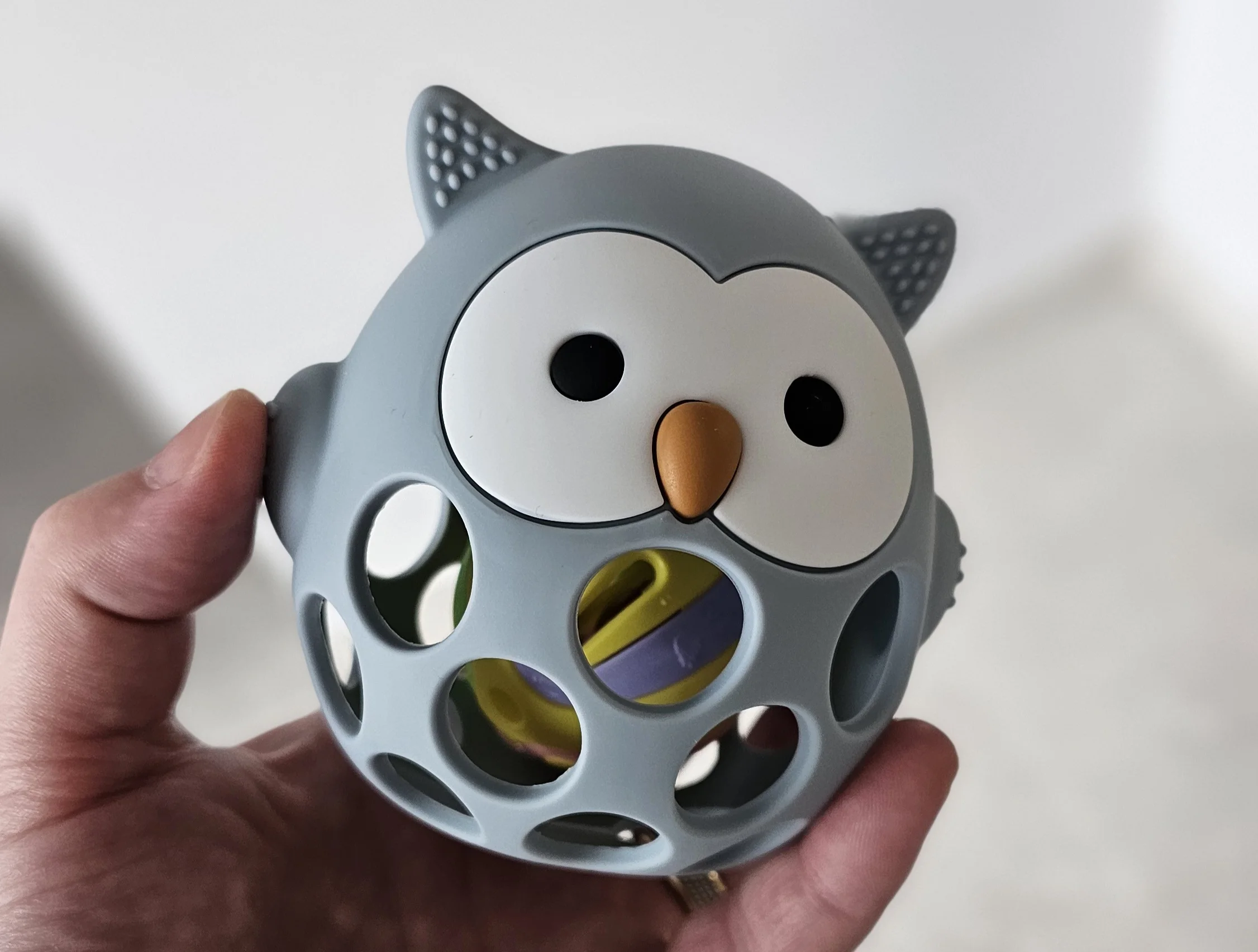 - Engaging cartoon owl design encourages independent chewing